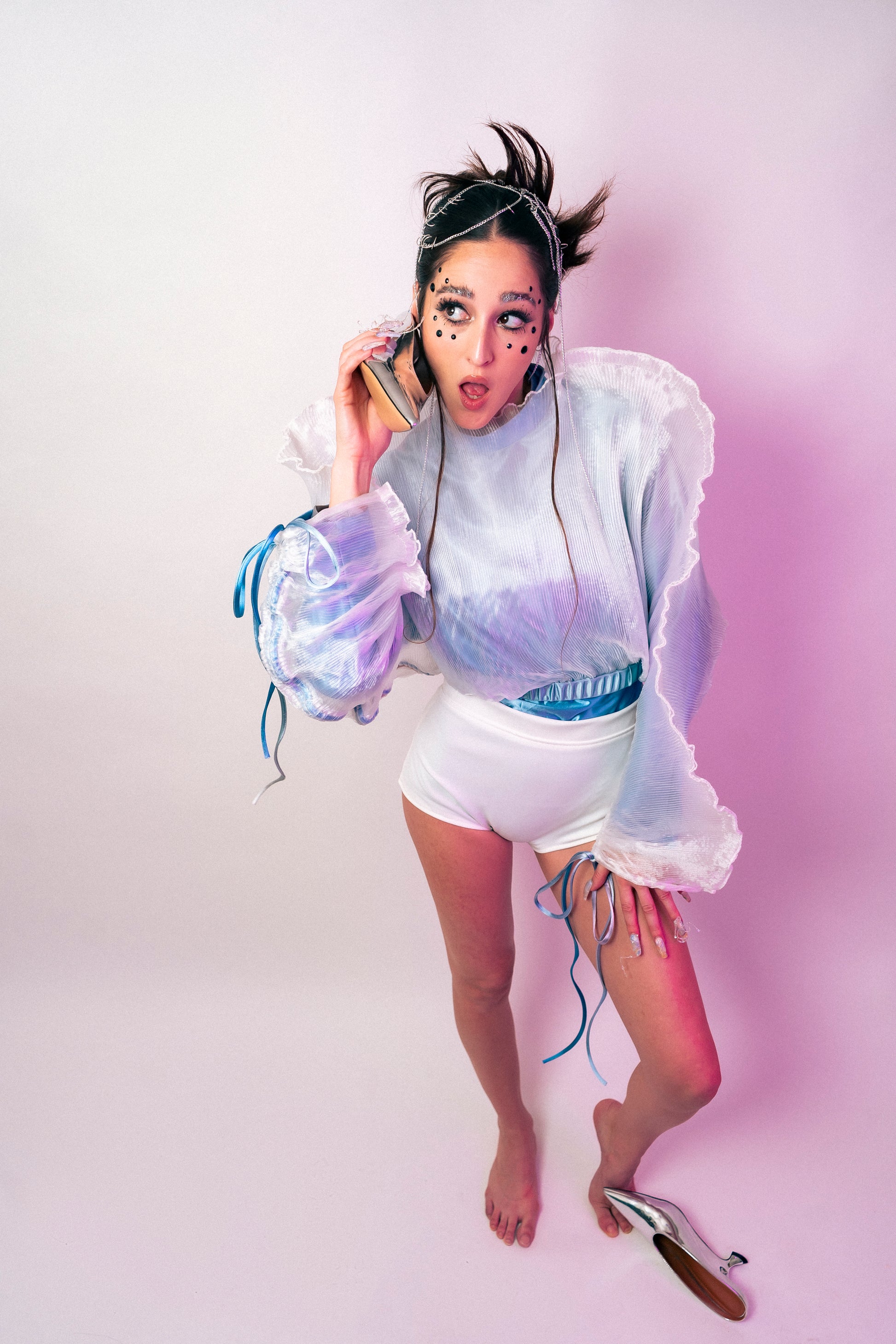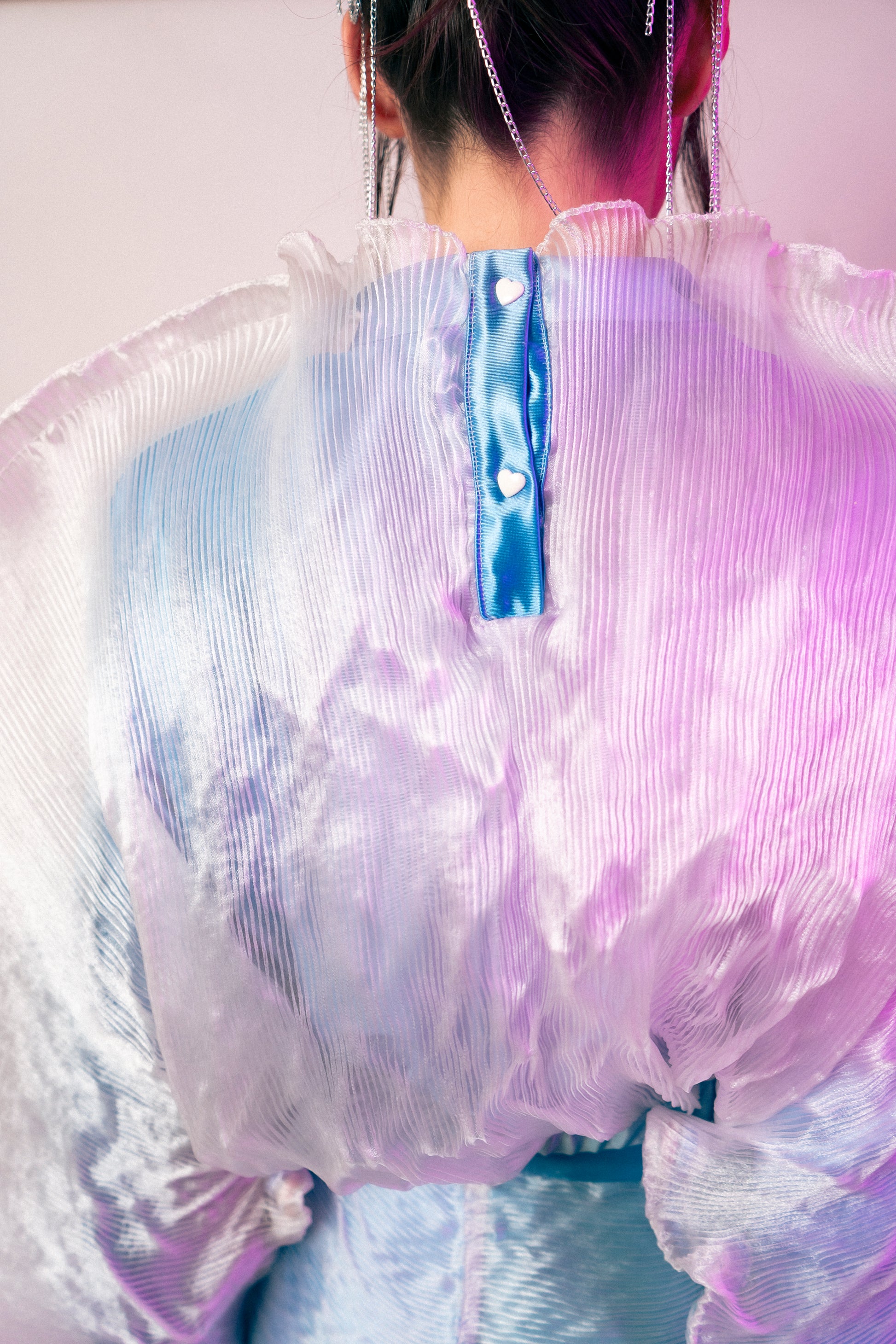 Pair it with the matching Reeded Organza Barrel Pants for a head-turning set, or dress it down with tailored trousers or your favorite denim for a cool, modern edge.